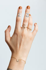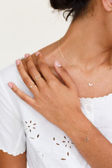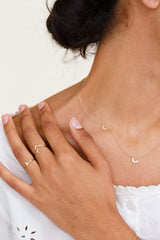 This collection marks Moon+Arrow's tenth anniversary, designed by founder, Chelsea Pearce and in-house jeweler Teresa Kahres. This collection honors the crescent moon shape that we have worked with from the beginning; it is a symbol of creativity and growth.