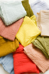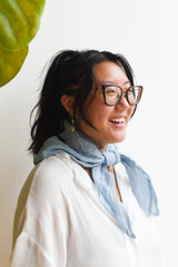 A fine weave of organic cotton threads creates a soft, translucent scarf with body and slight texture. A denser weave than the regular cotton, but still light and airy. Now in a smaller size, perfect as an accent, tucking under a jacket, in your hair, or tied on to a bag.