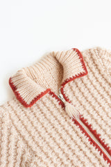 Shop Gus & Way’s Zip-Up Vintage Sweater in Red and Cream Stripes. This stylish sweater features a classic zip-up design and a timeless red and cream striped pattern. Perfect for adding a touch of retro charm and warmth to your child’s wardrobe. Ideal for casual outings or layering on cooler days.