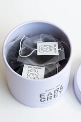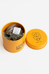 organic teas in pyramid sachets, presented in Japanese tins which are meant to be refilled and reused.
