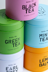 black, mint, green, earl grey, lemon balm