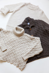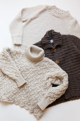 McConnell is an Irish knitwear brand located on the Wild Atlantic Way, on the west coast of Ireland. With a strong focus on heritage and craftsmanship, the collection draws inspiration from time- honoured work-wear pieces. The geansaí for example, is key - and traditional Aran and fisherman rib sweaters are reworked for a contemporary wardrobe.