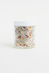 Transform your bathtub into a haven of relaxation with our Floral Mineral Bath, sprinkled with petals of chamomile, rose, and lavender! Dead sea salt and organic essential oils make this soak your new hero for relief! All tucked away in a 8-ounce glass jar, simply add your desired amount to warm bathwater for a spa-like experience. Take a dip and slip into some serious skin-soothing relief!