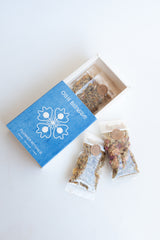 Contains: 4 Facial Steams in HOME compostable bags packed with nature's goodness, using the healing power of flowers to gently purify, reduce inflammation, & hydrate your skin, unveiling a nourished complexion.