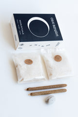 1 New Moon Bath Soak: In HOME Compostable bag with Charged Dead Sea Salts, Colloidal Oatmeal, Epsom Salt, & Lavender essential oil.