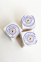 All the Nablus soap brands we sell are cooked in the traditional style out of olive oil, water, and soda, resulting in a soda-less bar of pure saponified olive oil.