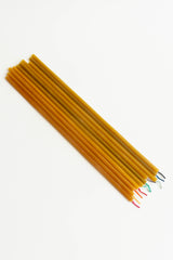 Thin and fine candles from pure beeswax with multicolored cotton wicks.