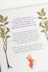 Spend a day with the Princess and her friends in the forest. Dew children help to get her dressed, and comb her golden hair. Little moss children bring her a delicious forest breakfast, then she practises her writing with Mrs Crow, her teacher.