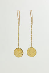 Textured medium brass full moon earrings with gold fill bar and link chain.