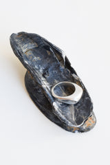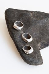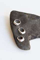 Carved from wax and cast in sterling silver, this ring is a hefty yet comfortable piece to add to your jewelry collection. The top surface has a matte finish and the side surfaces are high polish, creating a beautiful contrast and reflection of light.