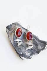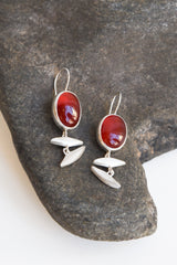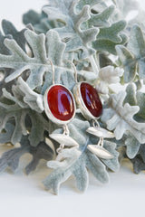 Sterling silver and carnelian earrings. Approximately 1.75 inches long by .6 inches wide.