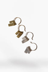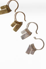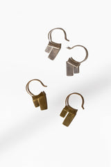 A sweet petite earring that adds a little 'fancy' to your everyday. The small rectangles flutter adds bit of shimmer. Available in brass with 14k gold filled ear wires and sterling silver with sterling sliver ear wires. Approx. 1" in length.
