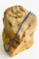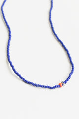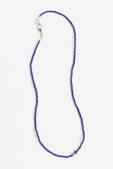 A bold pop of cobalt for your everyday or evening glow. Hand-strung in South Philadelphia, this one-of-a-kind necklace by Fond Jewelry features a striking palette of vintage and repurposed beads in vivid blues. Each piece is thoughtfully composed by local maker Emily H., who brings new life to old materials through playful design and sustainable craft.