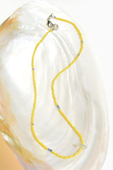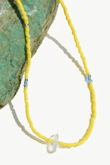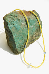 Like a little light you can wear. The Sunshine Necklace by Fond Jewelry is strung with bright, joyful yellow beads and dotted with unexpected pops of blue, like a clear sky breaking through a summer morning. Made in South Philadelphia using repurposed vintage and gemstone beads, each necklace is a one-of-a-kind creation from local artist Fond Jewelry.