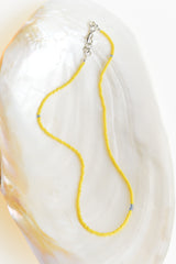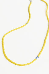 Like a little light you can wear. The Sunshine Necklace by Fond Jewelry is strung with bright, joyful yellow beads and dotted with unexpected pops of blue, like a clear sky breaking through a summer morning. Made in South Philadelphia using repurposed vintage and gemstone beads, each necklace is a one-of-a-kind creation from local artist Fond Jewelry.