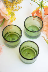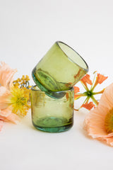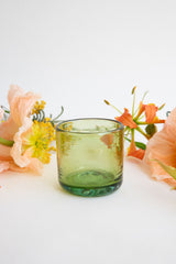 Each glass possesses its own unique character, making your drinking experience truly one-of-a-kind. These glasses also make a charming addition to your decor, whether as a vessel for a tea light or paired with our matching Colorful Blown Glass Bottles (BS242) for an elegant bedside water carafe. Measuring 2.5" x 2.5" and holding 4 oz, these glasses are both functional and luxurious.