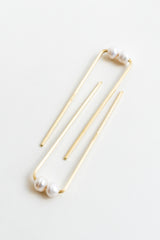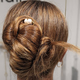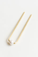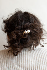 Beautiful and functional brass hair forks are set with chunky pearls in Cream and Grey for a classic, modern look. Wear them in your hair or display as a pretty conversation piece.