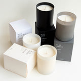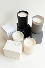 The Shades Collection offers a new look to the already beloved dilo scents. Matte glass vessel housed in a heavy stock, foil printed box - providing for a look bold enough to match the candle within.