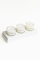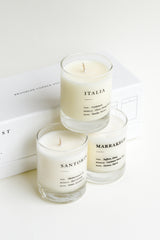 Our Classic Candle takes you to our favorite places in the world, places we’ve traveled to that have a permanent place in our olfactory memories. Pick three to try, gift, or savor individually. Hand-poured in screenprinted glass votives and packaged in a perfectly giftable luxurious textured box.
