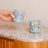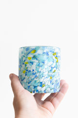 Hand blown glass tumbler made in Guadalajara. Three and a half inches tall and 3 inches in diameter. As this is a handmade item, size can vary slightly. the pattern of colours is unique for each glass, no 2 are exactly alike. All our glass ware is lead free and FDA inspected. Made by hand in a family run workshop, vidrio soplado is durable and dishwasher safe. LUZ Collection is indigenous made, owned and operated. Although LUZ Collection is not a certified fair trade business, we make every effort to adhere to fair trade practices.