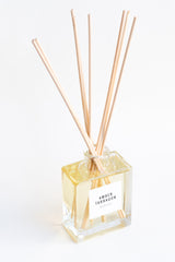 Includes: 4.8 oz. diffuser oil, natural rattan reeds, modern square glass bottle made with recycled glass
