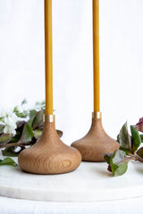 Oiled oak candle stick holder with a signature detail - the brass socket - that fits 1 cm and 0,5 cm diameters (any candles from our range except Classic Beeswax Tapers).
