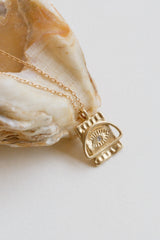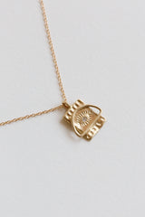 The Spirit Eye + Sun Necklace by Lio + Linn is naturally simplistic and elegantly beautiful . Lio + Linn honors the process of 'thinking with your hands' and embraces fine details such as those found in art, design, and craft. Each piece is handcrafted by Lio + Linn in Brooklyn, New York.