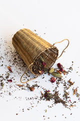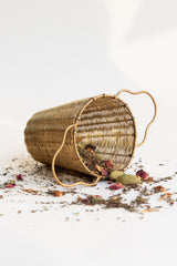 Bellocq metal artisans, for the more intimate brew, have designed this versatile, hand-crafted brass tea strainer, an in-house favorite.  Simple and elegant, this strainer will quickly become your best friend. Available in two sizes, the Petite Basket Brass Strainer is built to perch on the edge of your mug and designed to strain leaves from a larger pot into your cup.