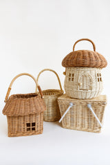 A handmade 100% Rattan house that travels with you wherever you go. Featuring a woven body, sturdy Rattan handle, and the sweetest window opening this Basket is designed to carry all things small and precious!