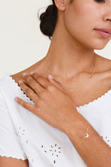 This collection marks Moon+Arrow's tenth anniversary, designed by founder, Chelsea Pearce and in-house jeweler Teresa Kahres. This collection honors the crescent moon shape that we have worked with from the beginning; it is a symbol of creativity and growth.