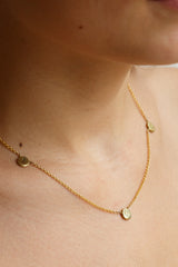 Three textured small brass full moons with gold-filled cable chain.