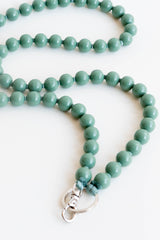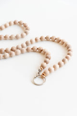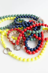 Keychain with elastic band and threaded wooden beads.