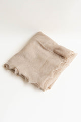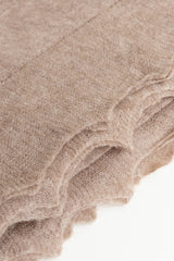Crafted from exceptionally fine cashmere fibers, the Luna Scallop Edge Cashmere Shawl in Taupe feels as soft as a cloud. This beautifully knitted piece features a scallop edge that adds a feminine touch to its design. The translucent texture and generous size make it versatile enough to pair with a bikini for a chic beach look or drape over an elegant silk dress for an evening out. Whether you’re heading to the shore or stepping out for a lovely evening, this shawl brings a delicate and stylish layer to any outfit.