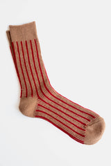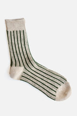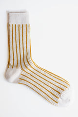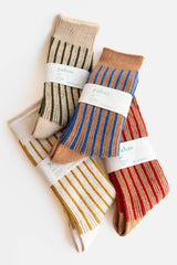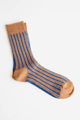 Organic Cotton Mohair Stripe Socks in Blue. These striped, low-gauge socks are knitted from mohair and organic cotton. Made with mohair, they're soft, light, and gentle against the skin. The base, heel, and toe are made with thick organic cotton. These socks are thick and warm.