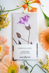 Morning Glory: Their unique recipe includes 72% Dark Chocolate, Coffee, Dates, Lion's Main, Black Lava Salt, and Calendula. With ingredients like chocolate liquor, soy lecithin, and vanilla, as well as toppings like elderflower extract, organic rose petals, and granulated orange peel, our chocolate bar is a true work of art. This bar contains Milk, Wheat, Soy, and Almonds, and is adorned with a beautiful botanical design on one side and scattered rose petals and toffee on the other.