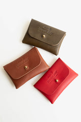Italian or USA leatherHand-set brass closurePlain or hand-paintedMeasures: 4 x 2.75"MSRP: $35 (plain)$45 (painted)
