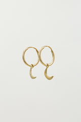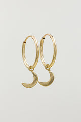 10kt yellow gold crescent moon on gold fill endless hoops.