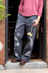 Ondo is the collaborative work of Jess Larson and Autumn Ondo, two Philadelphia artists reimagining damaged and discarded clothing through visible mending and hand-carved stamped prints. Each piece is one of a kind, celebrating repair, individuality, and longevity while keeping textiles out of the landfill. This special collection was created exclusively for Moon+Arrow, blending Ondo’s slow fashion ethos with our commitment to sustainability and intentional design.