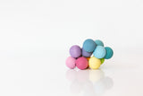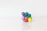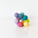 This beautifully-made Natural Wood Baby Beads Grasper from German toymaker Grimm's is a tactile delight! The large wooden balls are joined together by an elasticized heavy-duty string. The balls on this grasping toy engage and entertain the littlest of babies, and you may find they even attract toddlers and older kids! Your child will enjoy feeling the smooth texture and exploring the contours of each natural wood ball. Babies love rolling the balls around, and shaking them too. Rolling the balls over each other is a soothing, calming experience -- an ideal tactile de-stresser; even adults find it soothing to manipulate! A perfect toy to take in the baby bag! Comes minimally-packaged in a small gift box.